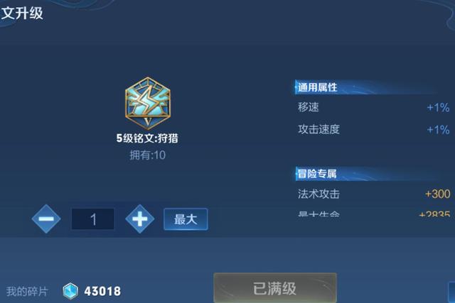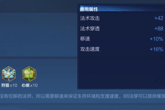 第二种蓝色铭文给大家推荐的是狩猎,狩猎这个铭文加的是移速和攻速,猛地一看感觉不像一个法师用的,但是对于甄姬来说,攻速和移速都是短板,用了十个狩猎铭文之后,你就会比正常法师跑得快一点,普攻也有加成,很完美的弥补了甄姬的短板!