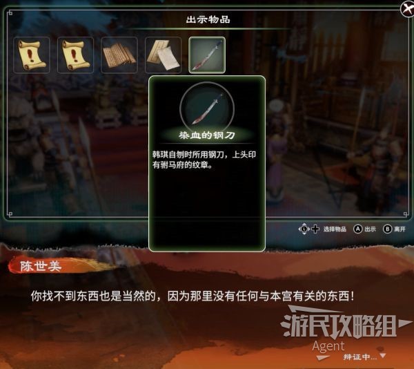 消灭全部敌人,发现染血的钢刀,回开封府找公孙策对话。