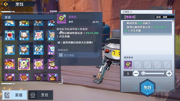 雪莲花采集也是非常方便的,基本上在沃兰地区都是随处可见,获取没有任何的难度,那么实际上雪莲花食材需要利用到的地方并不是很多,大家可以根据需求进行采集。