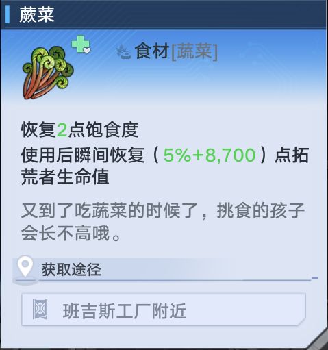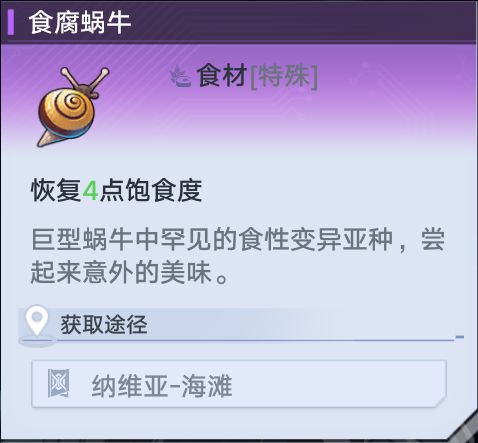 大米,沙拉酱,洋葱,牛奶,气泡水在食材商人处购买,星岛的在遗迹A01门口,班吉斯的在班吉斯码头。由于白色食材以及蜂蜜获得途径过于直观,本文不做赘述。本文将展示其余食材获得地点并着重介绍紫色食材榛子,虫草,黑松露的获得途径