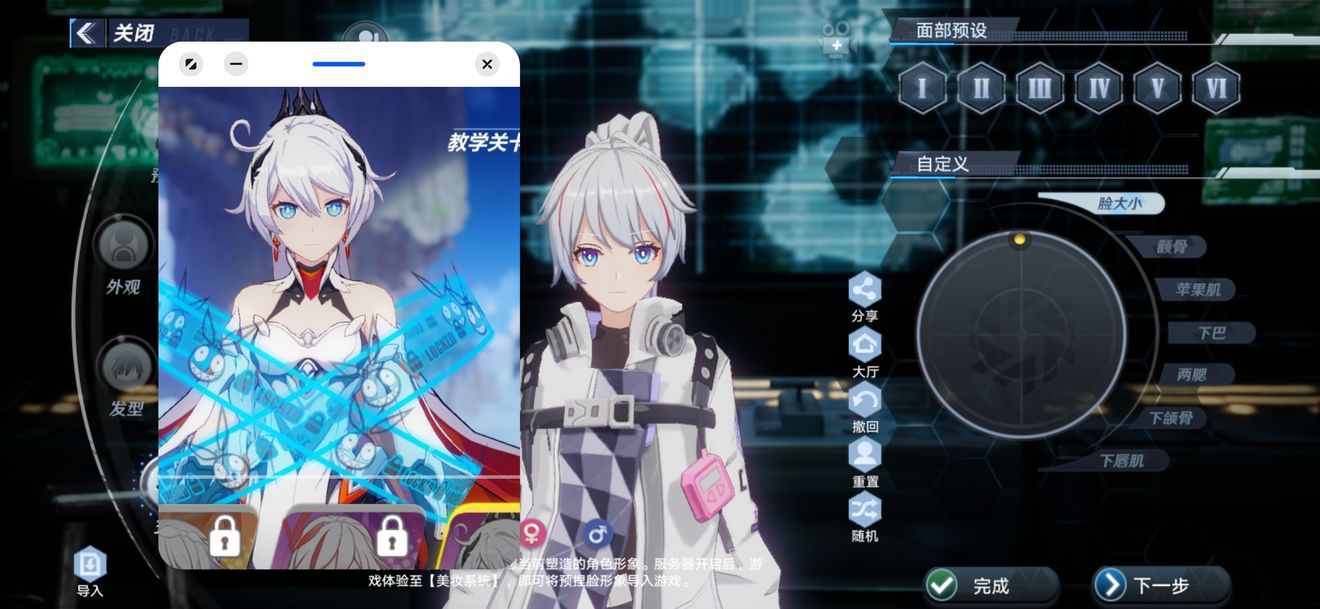 点击预捏脸→左下角「导入」→输入下面的代码,完成!
