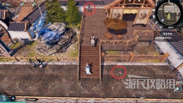 逛逛藏墨派,可以看到一代男主柴朔风的雕像。雕像附近捡到王浩的密函,角落里蹲着的就是王浩。
