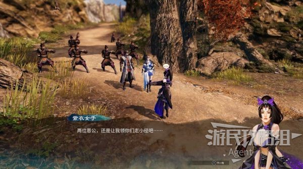 往西前往药王谷,路上遇紫衣女子,再往西被唐门弟子拦路。