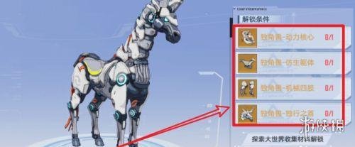 需要材料:独角兽-动力核心, 独角兽-仿生躯体,独角兽-机械四肢,独角兽-独行之首