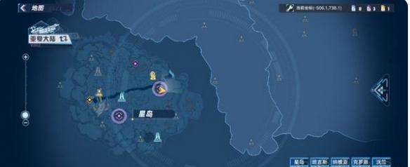 1、在星岛地图中,如下图坐标(-506.1,1738.1)。