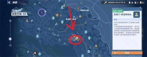 2、在大地图中国点击班吉斯-码头进行传送,具体的位置如下图所示;