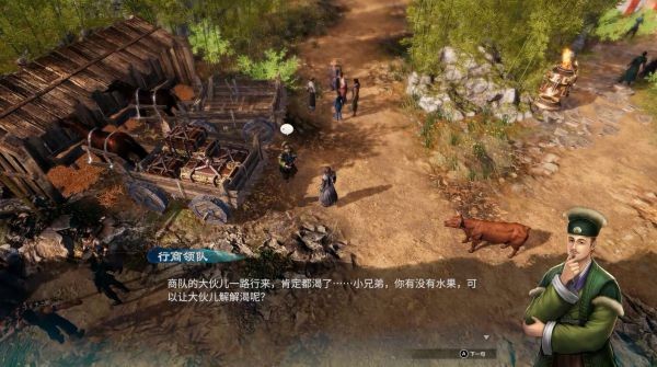 来到开封城西的侠心阁,门口行商领队想要水果解渴,给他10个苹果。