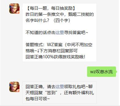 问题:昨日的第一条推文中,甄姬二技能的名字叫什么?