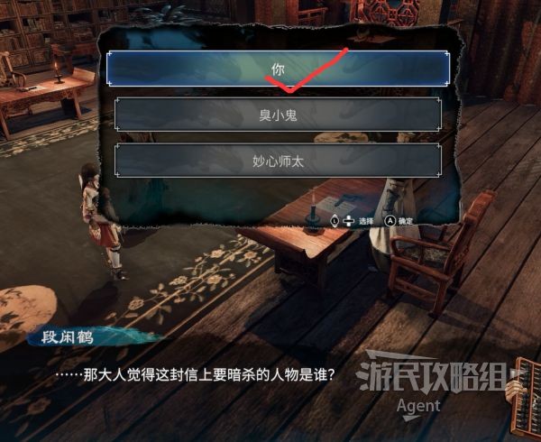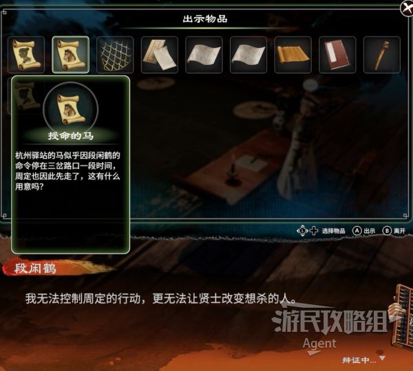 左边书架出示细竹片,得到竹球。右边书架上拿到与太师的合约,再出示笔墨得到签名协议书。