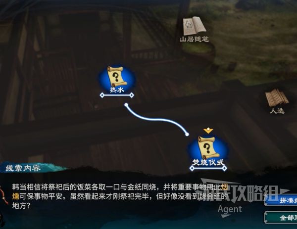 调查供桌,旁边看到名贵书法。对公孙妤出示祭祀,得到焚烧仪式。