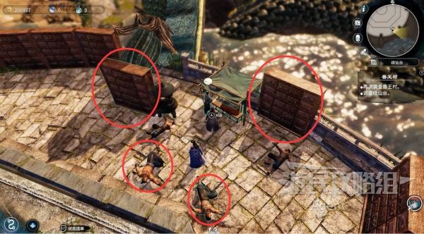 对话粗野男,摧毁粗野男旁的木桶得到渔网。