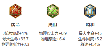 夏侯惇是一个典型的坦克英雄,红色宿命提供攻速和生命物理防御;蓝色铭文调和补充移速和生命回血,更加方便于支援游走;同时绿色鹰眼补足一些伤害!
