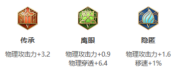 铠的一技能回复能力与物理加成有关,传承增加物理攻击力!鹰眼所提供的物理穿透提升后期伤害!隐匿不仅可以提高铠的物理攻击力,还可以增加铠的移速更好的追击敌人!