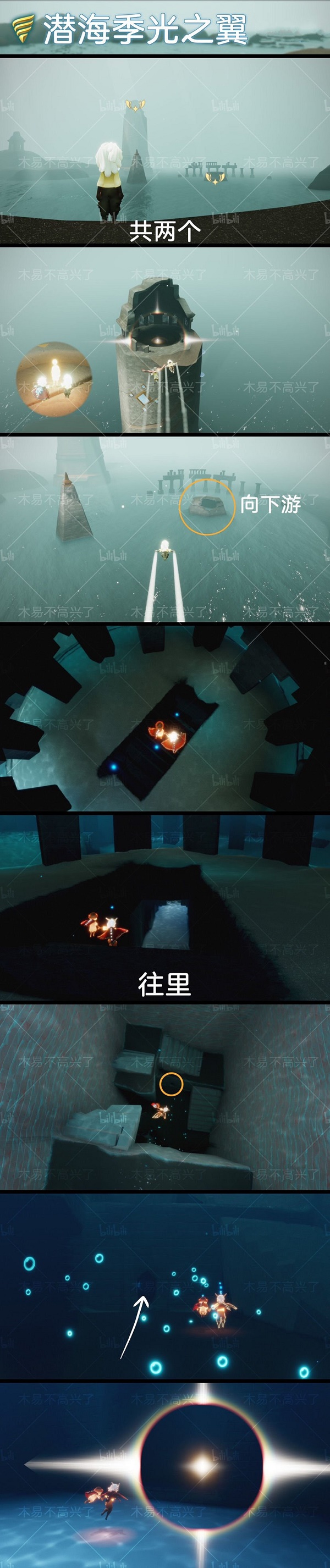 1、潜海季光之翼小金人位置如上图所示,根据游戏宝小编给出的图示攻略即可轻松找到这两个光之翼小金人了,隐藏的挺深的。