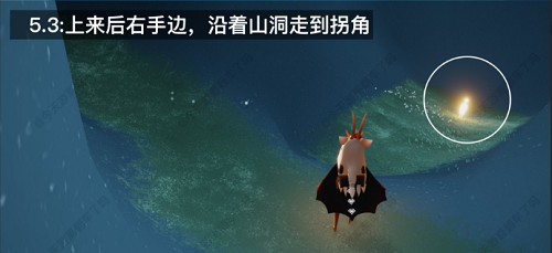 5、第五个看上图的标示,按照标记的路线走就可以找到第五个光之翼了。