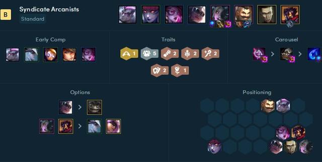 该阵容在辛迪加之下不管是防御还是回血都很好,阿狸只需要搭配输出和回蓝疯狂输出就行,前排有保镖,后排有白魔法和学者,攻防俱佳。