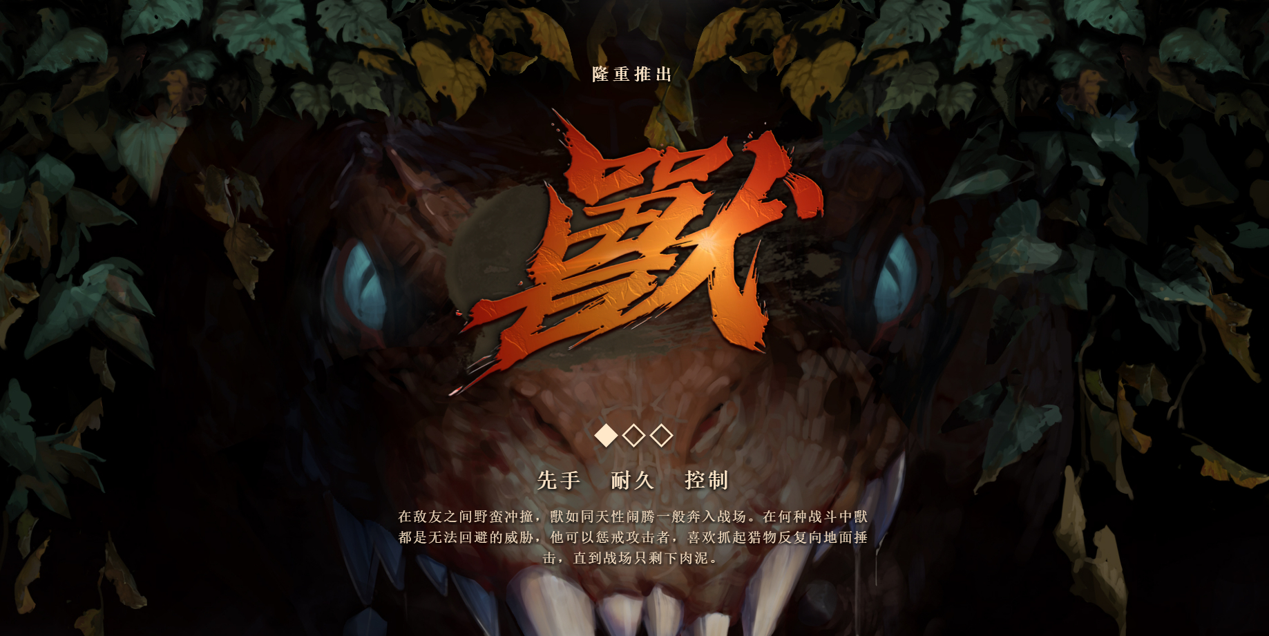 獸积蓄力量再向选定方向冲去,将敌人和队友同时击退。敌方单位被撞时受到伤害,并且被眩晕。蓄力时间越长,獸冲的距离越远。