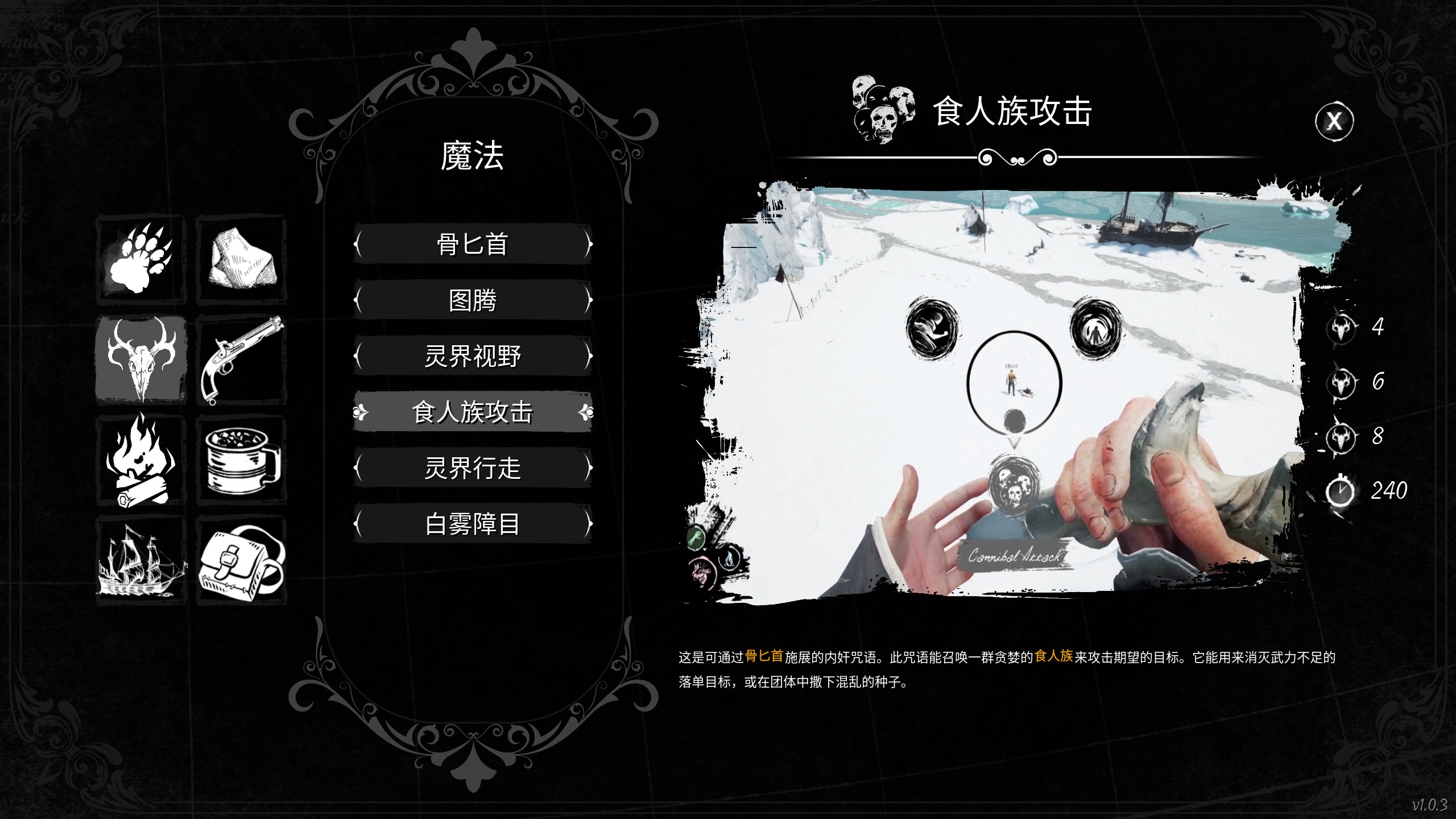 释放野人技能时需要指向一个攻击对象再点击左键确认,食人族不能攻击船上的玩家,施放技能时最好离远点,失去攻击目标后若你暴露在食人族视野中食人族会转向攻击你。
