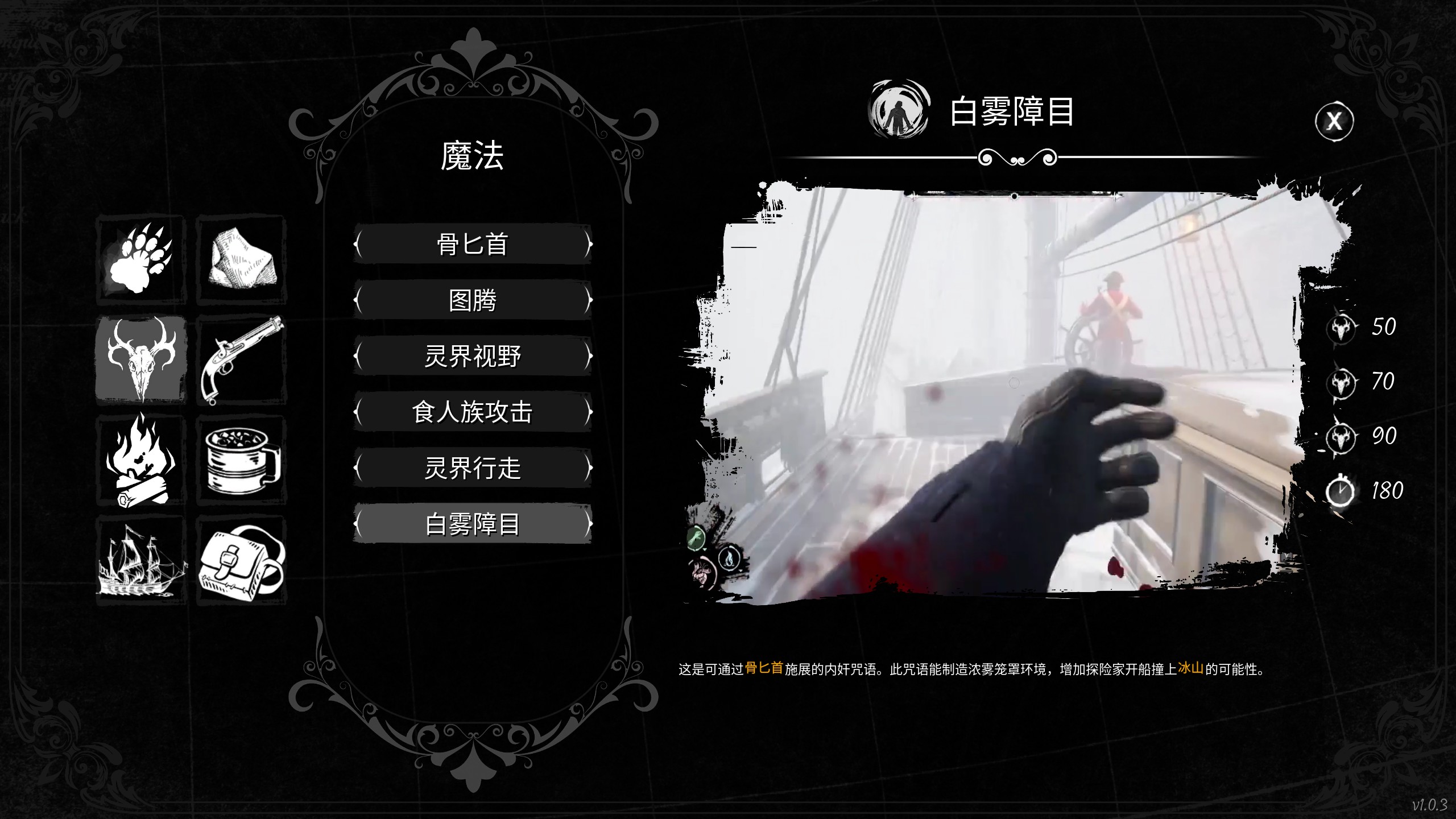 释放全图迷雾,在听到鸣笛声时释放可阻碍开船视线。