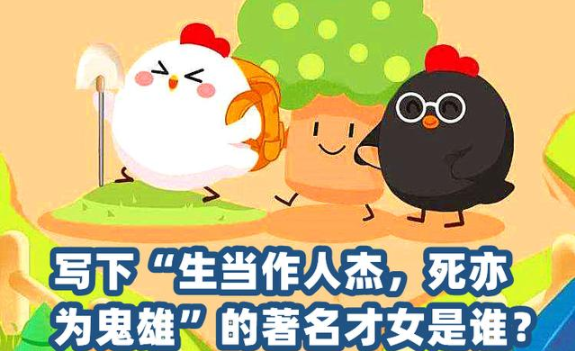 写下"生当作人杰,死亦为鬼雄"的著名才女是?这是支付宝蚂蚁庄园2022年03月07日为诸位勤劳并且富有爱心的庄园农场主人所精心准备的题目!小编相信有着一定的文学知识基础的小伙伴们应该都可以轻松的回答正确吧!