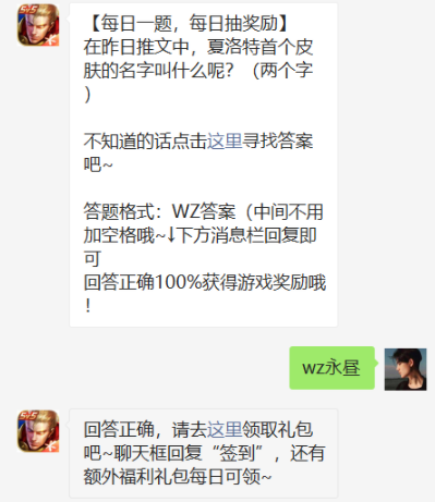 在昨日推文中,夏洛特首个皮肤的名字叫什么呢?(两个字)?