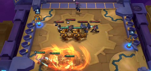 3、凛冬给艾克,挑战转给伊泽瑞尔,机器人拉两星,然后按照上图的站位站好即可开始挑战,挂机就可以通关了。