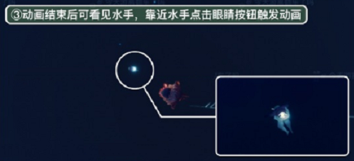 3、动画结束后可看见水手,靠近水手点击眼睛按钮触发动画。