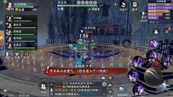 6.在李长风承受了一定的伤害之后,会进入蓄气,切换成另一种状态,并伴随有多重AOE伤害,在这种状态下,他的攻势会变得更加强烈。但是玩家可以利用他蓄气的时间进行集火输出,坦克玩家拉好仇恨,辅助给好奶。在勐烈的攻势下,BOSS不出几个回合就会被击败,副本顺利通关。