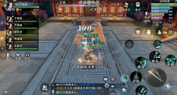 4.打完宫典打坐恢复一些,接下来便是副本中第二个首领:南庆太监总管洪四庠,他的两个技能分别是【玄冥神掌】和【霸道真气】。体验下来,相比宫典要难上许多。