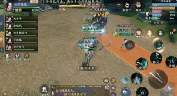 4.首先是【八荒烟尘】,是一个扇形的面向技能。这个技能施放较慢,我们有充足的时间躲开。