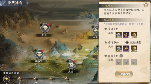 1、打开决战神庙主界面后,你可以在大地图上看到若干个“地点”,而这些地点里又包含着若干事件。