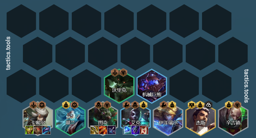 羁绊组成:5发明3炼金2刺客2精密2极客1未来战士