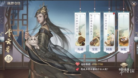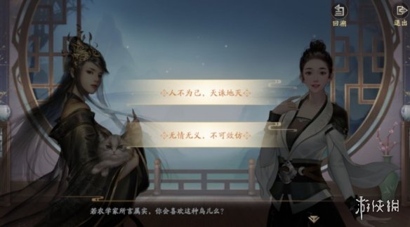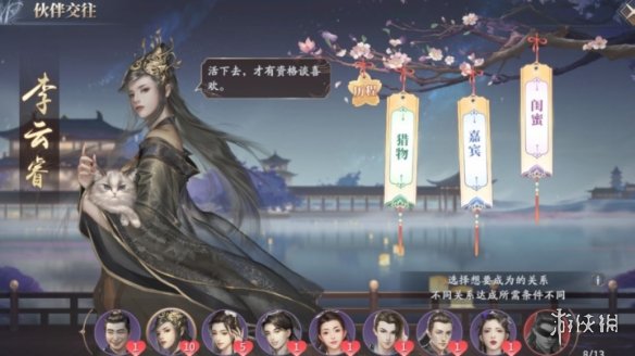 默契度可通过完成攻略提升,点击“攻略”会进入剧情场景对话,选择正确的回复,便能够提升默契度;比如说在“笼中之鸟”这段对话中,长公主与我们聊到了子规,这种鸟会把蛋下到其他鸟的巢穴中,接着话锋一转问我们对这种鸟怎么看,表面是在问鸟,实际上是在问人。所谓“伴君如伴虎”,这答错一句,那可就有性命之忧,所以这个时候应该照着长公主的意思,回答“人不为己,天诛地灭”,方能讨得其欢心。