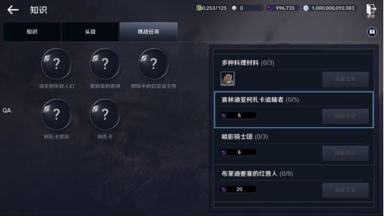 跟随任务继续推进,需要我们完成知识-挑战任务-赛林迪亚柯扎卡追随者,该知识内容共分5个小任务需要我们完成,现在我来逐一讲解。