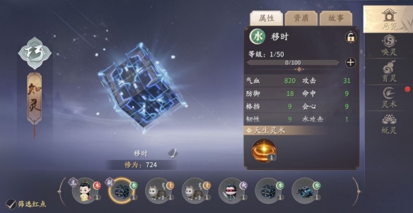 “育灵”总共有五大分类,山根,相魂,医心,卜脉,命骨,每一个分类共有五个阶段,培育便可以增加对应的属性,像培育山根可以增加命中与格挡。培育所需素材为育灵露,通过澹泊纪事或海捕令就可以获得,比起唤灵膏,更易获取,完成每日任务就能够积累到一定数量,可顺带着积攒保灵膏。