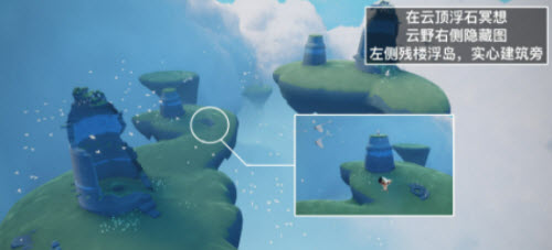 4、「在云顶浮石冥想」在云野右侧隐藏图左边残楼前实心建筑旁的石碑前光圈处打坐并留言