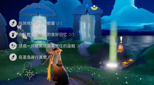 1、「向其他玩家传递能量」给快没能量的玩家回复能量(大叫,牵手,点蜡烛),和好友手拉手进一个地图,去云野点亮一个无翼,实在不行的的让好友拉着你的手飞几下(你做充电宝)就行了。