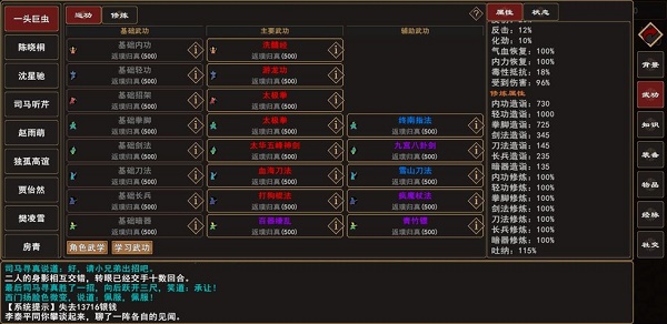 5.武器织天,搭配游龙功加攻速。17破招附和太极拳攻被动。