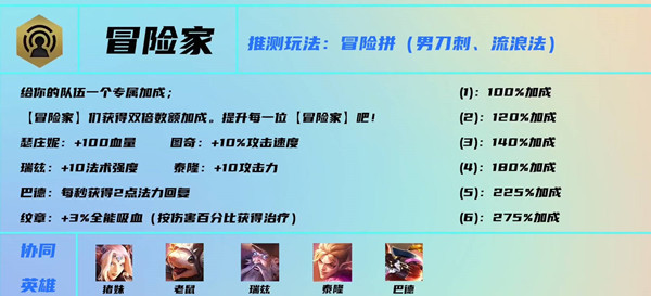 1:冒险家给你的队伍一个专属的加成,冒险家们获得双倍数额的加成,提升每一位冒险家;