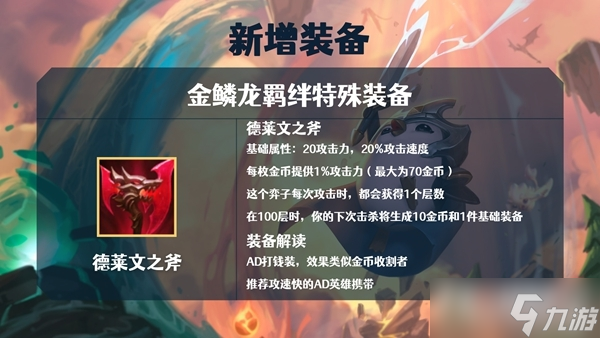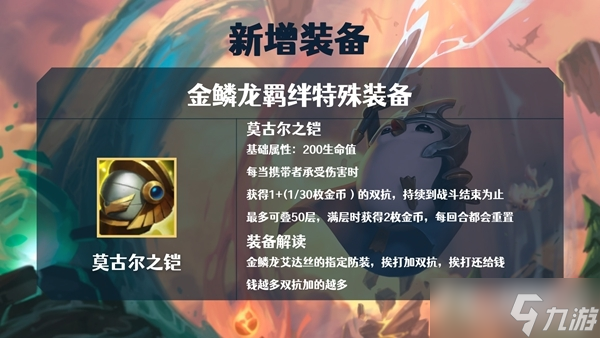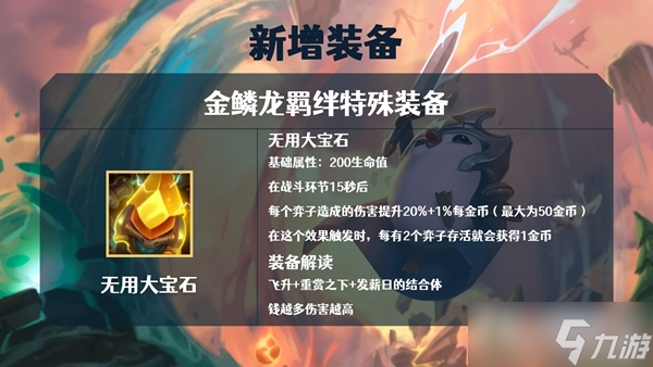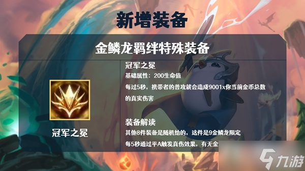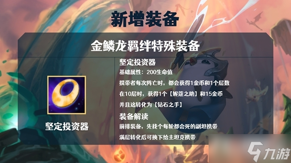 金鳞龙是金铲铲之战s7的一个全新的羁绊,这个羁绊可以让玩家的角色获得特殊的装备,那么金鳞龙可以获得的装备有哪些呢?想要充分了解的玩家就来看看下面小编带来的攻略吧。