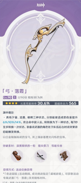 霞色宝珠是2.7新增加的一个道具,这个道具唯一的一个用途,就是进阶2.7版本送上的全新活动武器,4星长弓落霞;