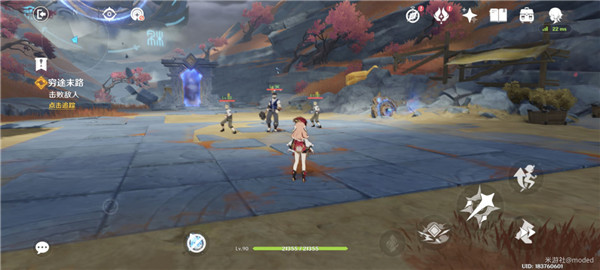 2.来到第二个区域,触发剧情后出现两波愚人众,一波是水胖加火枪,另一波是债务处理人,这里只能用试用的烟绯和夜兰