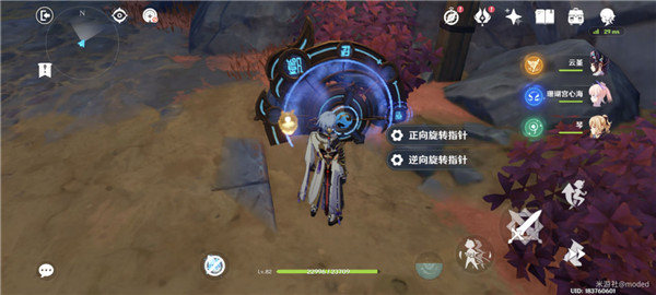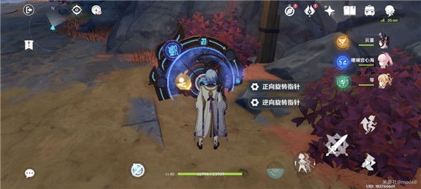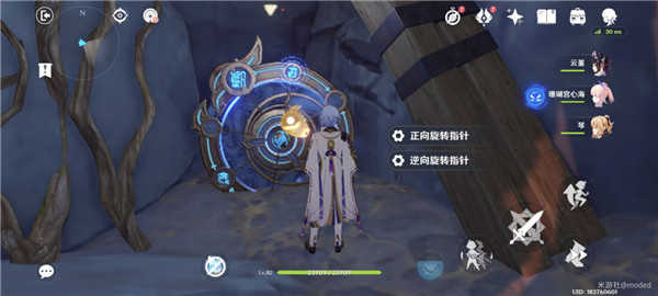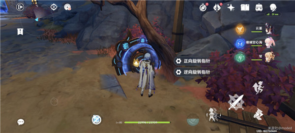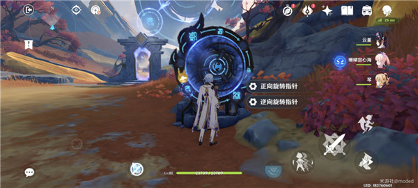 3.来到第三个区域,把圆盘旁边的树苗普攻打掉,然后正向旋转指针一次,继续前进