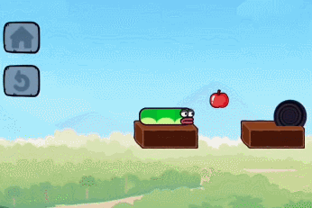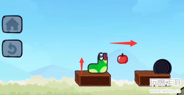 3、我们吃完苹果以后先不要进入黑洞,达到另一侧的平台以后向上,然后掉头。