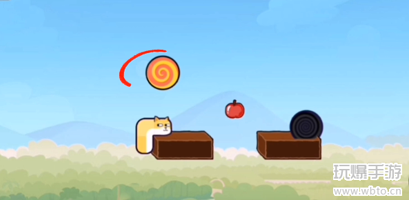 1、我们只需要在平台边缘处想上,吃到苹果以后继续往前就能通过第三关。