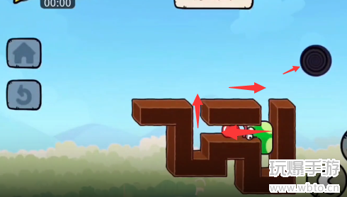 2、然后向左可以吃掉苹果,然后按照下图标记的方向移动。