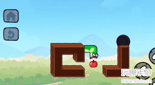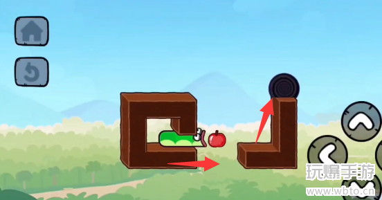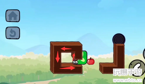 2、先不要吃苹果,然后往左侧移动,在里面调转一下方向然后再出来。