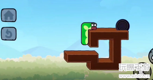 3、这个时候我们向左移动,然后向上吃掉苹果,然后向右移动,会掉下来。