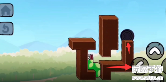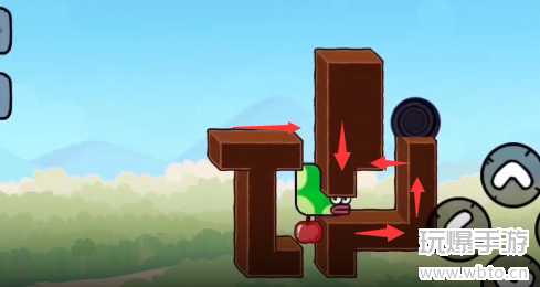 2、然后回头把苹果吃掉,按照下图的方向继续移动。