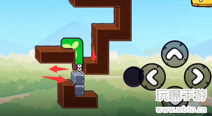 1、第一步:我们在初始位置调转方向,将石头推至边缘位置,然后将上层的石块往下推。